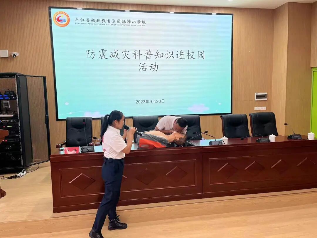 仪式上,应急管理局的邹勇同志发表讲话,强调了防震减灾的重要性,并呼吁广大师生关注地震安全,做好防震减灾工作。胡碧滔老师为在场师生讲解了地震科普知识,让人们在了解地震成因、预防措施等方面有了更深入的认识。平江县红十字志愿者服务队则就应急救护知识进行了详细讲解,重点传授了心肺复苏的流程和注意事项,并进行了现场演练,增强了师生的实际操作能力。