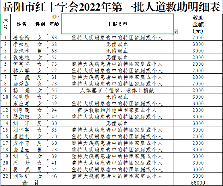 7.岳阳市红十字会2022年第一批人道救助名单公示。