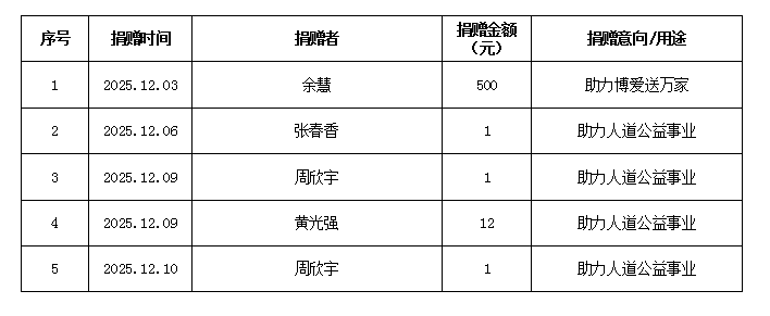 2025年12月捐赠情况公示