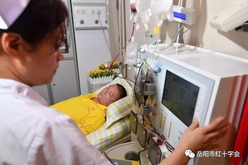 采集中,湖南省红十字会党组成员、副会长王广宇,湖南省造血干细胞管理中心主任,岳阳市红十字会常务副会长刘玲,岳阳市中心血站工会主席黎惠玲来到采集室对捐献者进行探望。