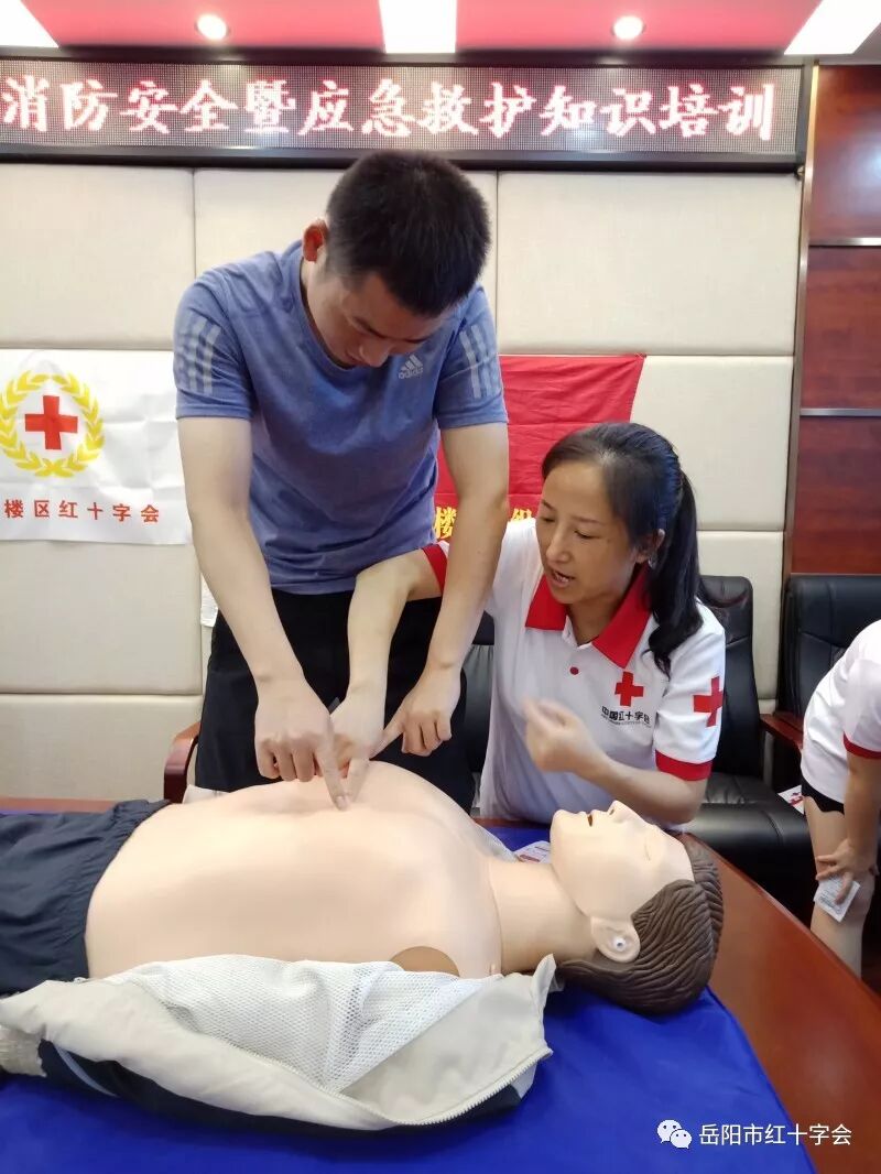 7月27日上午,岳阳楼区政府7楼区委组织部会议室座无虚席。原来,是区委组织部、区委编办联合区红十字会正在开展应急救护培训进机关活动。