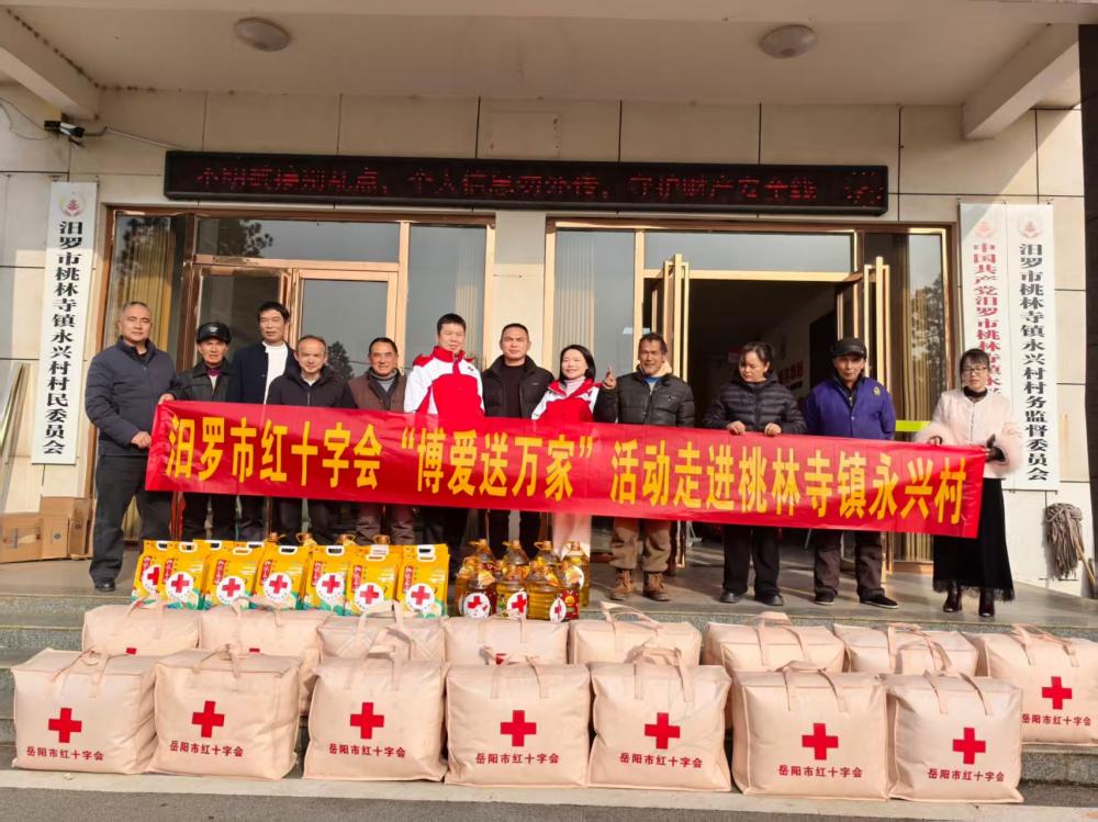 2026年1月30日,汨罗市红十字会开展“博爱送万家”活动。专职副会长巢选宏带队走进桃林寺镇永兴村,看望慰问困难群众15户,送上大米、粮油及棉被等生活物资,并与他们面对面谈心交流,倾听诉求,传递关怀,驱散负面情绪,增强积极生活的信心。